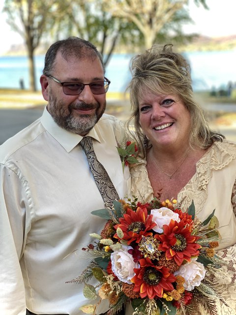 Leslie McDermott of Lomira, formerly of Platteville, and Chuck Gruenberger of Lomira were united in marriage on Oct. 10, 2020. It was a sunset wedding on Lake Pepin in Lake City, Minnesota. Their son, Logan McDermott, officiated the ceremony. A family gathering followed the ceremony at a lake side home in Lake City.