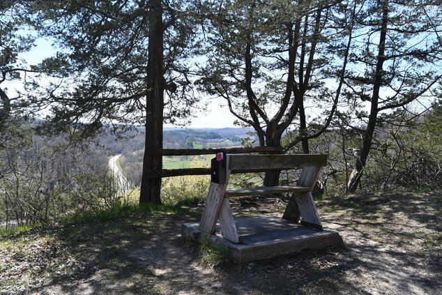 The idea/history of the bench on Lookout Point, actually originated in the mid to late 1970s according to Jim. A family relative, Kenneth Johnsrud, placed a picnic table and some “guard rails” near the edge/cliff.