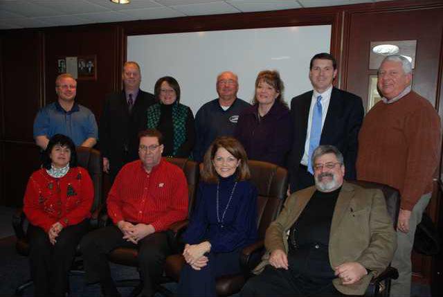 The Platteville Area Chamber of Commerce 2012 Board of Directors includes (front, from left) Deb McWilliams, President Elect Tim Boldt, Executive Director Kathy Kopp, President Tom Sigwarth, (back) Mike Olds, Ron Holl, Vicki Pluemer, Gary Osterholz, Ann Rupp, Aaron Cullen, Tom Osterholz, (not pictured) Jaime Collins and Jeremy Patnaude. Pluemer and Osterholz are retiring from the board this year. New members will include Chad Leuder, Rob Cramer, Jason Thompson, Dan Dreessens and Lori Bahr.