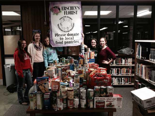Local food drive: Key Club teamed up with Erschen’s Florist to host a food drive for the local food pantries. To grab the attention of the students at Platteville High School, an award was promised to the grade that brought in the most non-perishable food items. The food drive had a slow start, so Key Club decided to extend the competition from a week to a week and a half. In the end, the school brought in more than 500 items while the freshmen and seniors came out on top in the friendly competition. During the food drive Erschen’s raised money to buy more food after the high school competition was over, and with that money Key Club went to Aldi’s and was able to buy 100 more food items
