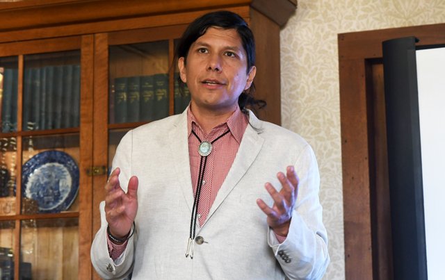 In his talk at the Crosscurrents Heritage Center on Saturday, Sept. 13, Casey Brown described himself as a filmmaker, writer, political advocate, Ho-Chunk Nation citizen, Bear Clan member, and guy that has an Emmy Award. Brown gave a talk about Native Futurism, adaptability, and ‘shuffling many worlds.’