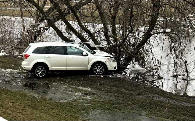 TREE SAVED THIS van from plunging into the Pecatonica River. Darlington Police and Rural Medical Ambulance Service, were dispatched to a motor vehicle crash on W. River Street on Saturday, Feb. 24, at 10:55 a.m. The vehicle rolled away, left the roadway, and struck a tree adjacent to the Pecatonica River. The owner of the vehicle, Charlotte Kendall, age 82, of Darlington, tried to get into the rolling car to stop it but was thrown to the ground and sustained minor injuries. Kendall was transported to Memorial Hospital of Lafayette County. Al’s Towing and the Lafayette County Sheriff’s Office assisted at the scene.