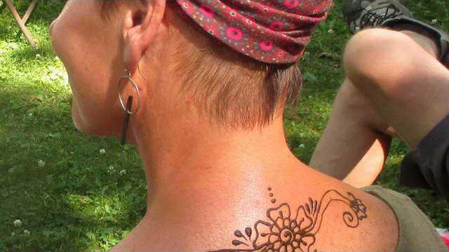We crawled out of our tent that morning and, regardless of the gentle rain that was falling, decided to ride our bikes into town for breakfast: homemade German pancakes and applesauce for me, and a plate full of steaming pancakes for Dane. When we got back on our bikes, the rain was pouring down. I turned and said to Dane, with the hood of my rain jacket blocking part of my face, “It’s raining harder, we might as well go get tattoos.”