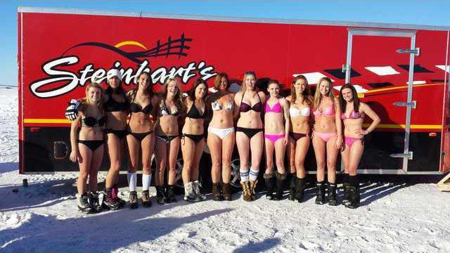 Eleven women — (from left) Nicole Wallenhorst, Tracey Smith, Kalie Means, Kali Weber, Jessica Zeller, Laura Dreessens, Tiffany Hake, Samantha Flynn, Lindsay Maas, Samantha Rule and Jeri Boone — braved below-zero wind chills to raise money for the Grant County Cancer Coalition during the Platteville Driftbusters Radar Run (The Journal, Jan. 29, page 1B) Bikini Run Jan. 25. Rule raised the most money, $835, while Smith had the fastest speed, 86.46 mph.