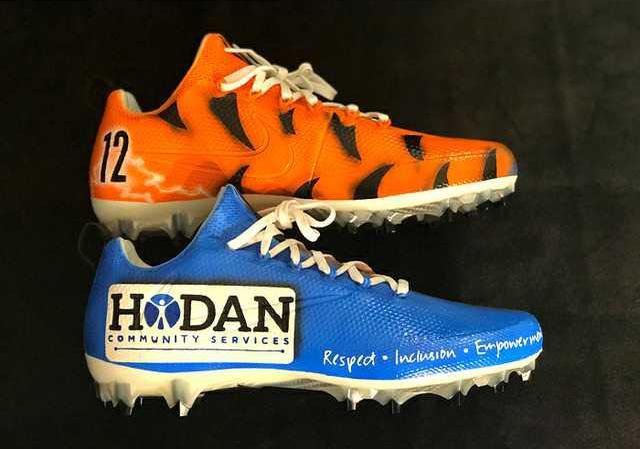 MINERAL POINT – Alex Erickson, former Darlington native and current Cincinnati Bengal football player, contacted Tom Schrader, the Development Director at the Hodan Community Services in Mineral Point and told Schrader that he had selected them as the non-profit charity that he would be promoting during this year’s NFL “My Cause, My Cleats” campaign. Erickson had cleats specially designed with the company’s logo to honor the organization. He will be wearing these special cleats next Monday night, Dec. 4 when the Bengals play host to the Pittsburgh Steelers on the nationally televised Monday Night Football game at 7:30 p.m. on ESPN. After the game, Erickson will have these special cleats given to them to display at Hodan Community Services.
