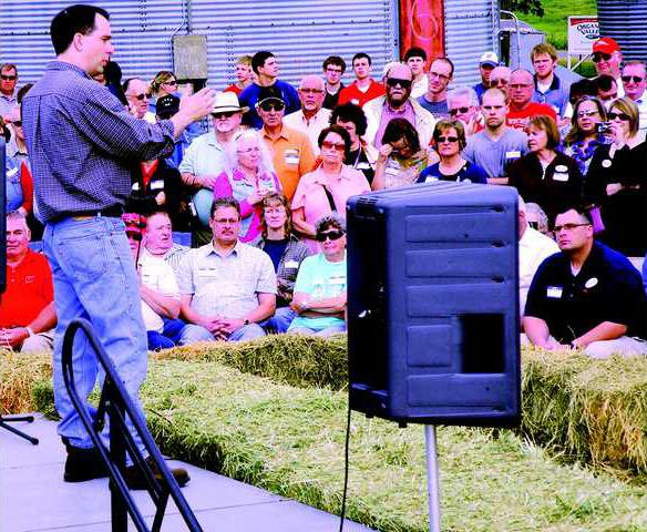 Gov. Scott Walker made an appearance in front of 300 people at the Town of Hazel Green farm of Rep. Travis Tranel (R–Cuba City) Friday morning.