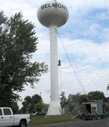 Work on Belmont’s water tower, including repairs and repainting, began July 29.