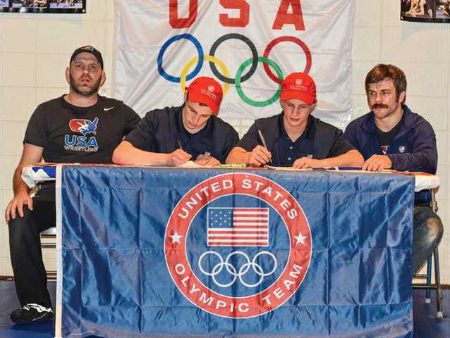 Fennimore native Alston Nutter signed a scholarship with Northern Michigan University on Saturday, March 24 at a ceremony held at Combat Wrestling Center in Blue River after training for the past two years at the Olympic training site in Marquette Michigan.