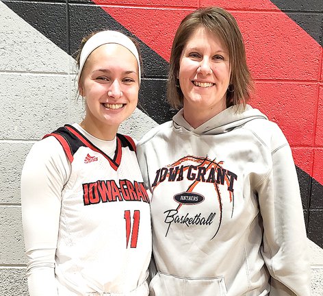 Liddicoat jumped in front of a cross court pass, stole the ball near mid-court and raced to the other end for an uncontested layup and a record-breaking basket. Iowa–Grant head coach Dan Liddicoat, who is also Olivia’s father, called a 30-second timeout and the younger Liddicoat was recognized for her accomplishment and thanked for representing Iowa–Grant basketball with class for the last four seasons. Schauff, who graduated IGHS in 1996 and was in attendance on Friday, was also recognized.