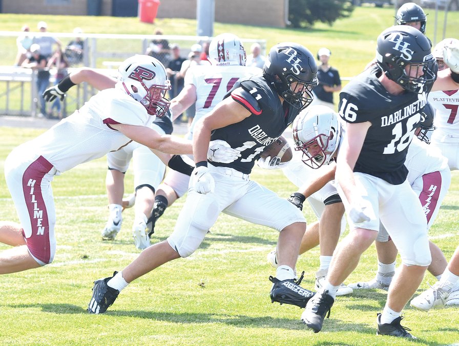DARLINGTON — Sophomore Calum Crist rushed for 206 yards and a touchdown on 22 carries in his first varsity start to lead the Darlington Redbirds to a convincing 28–0 non-conference win last Friday afternoon over visiting Platteville in the 2024 season opener for both teams. Crist chewed up yards on the ground all game to keep Darlington drives going. He then put the game away when he broke loose for a 55-yard touchdown run with 10:37 left in the game. Crist also recorded six tackles to help the Darlington defense blank the reigning SWC champion Hillmen.