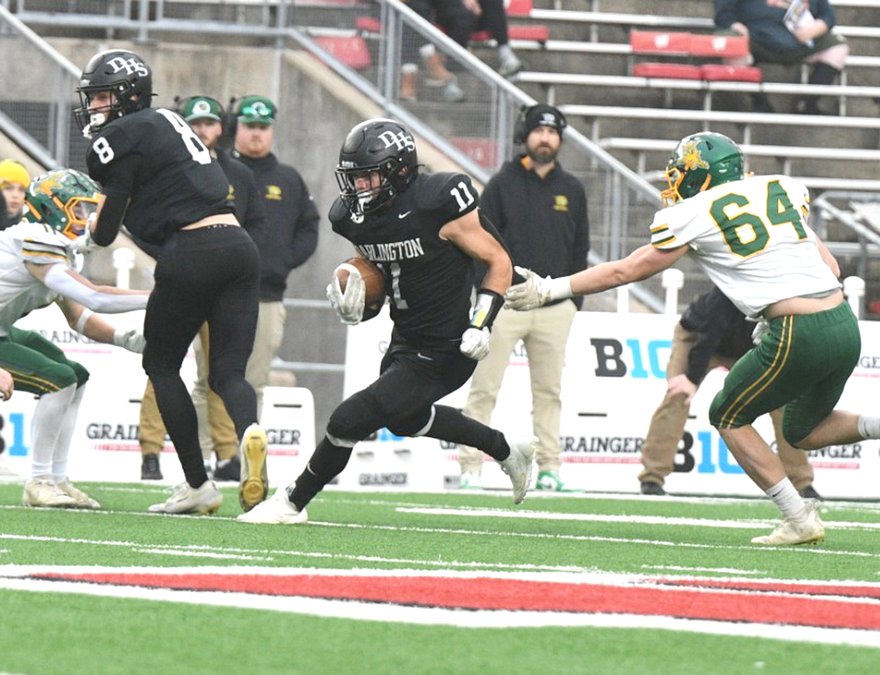 MADISON — Senior Calum Crist was a two-way standout in Darlington's 42–18 victory over #1-ranked Edgar in last Thursday's WIAA Division 6 state championship game.