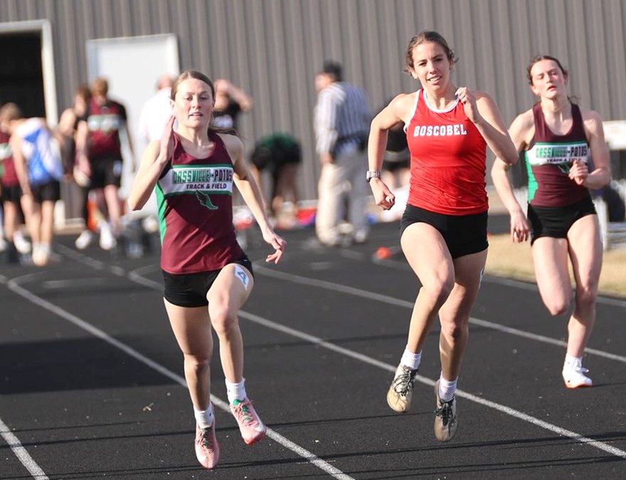 100 — 1.Brielle Fishnick 13.17, 3.Grace Eastlick 13.61, 6.Irelyn Walsh 14.12. 200 — 1.Grace Laufenberg 28.38, 5.Walsh 29.59. 400 — 1.Laufenberg 1:03.59, 5.Norah Post 1:09.48. 800 — 6.Lainey Riedl 2:43.67. 1,600 — 7.Bentley Tuescher 7:31.53. 3,200 — 3.Jessa Caley 15:34.15. 100 hurdles — 4.Iris Adams 18.88, 7.Rylee Schmitz 20.06. 300 hurdles — 5.Schmitz 1:02.18. 4x100 — 1.C/P (Adams, Eastlick, Fishnick, Walsh) 54.36. 4x200 — 5.C/P (Autumn Churchill, Avery Decker, Schmitz, Callie White) 2:05.30. 4x400 — 5.C/P (Post, Rachel Vosberg, Laufenberg, Riedl) 4:51.12. 4x800 — 3.C/P (Post, Caley, Allie Kaufman, Riedl) 11:54.78. High jump — 6.Churchill J4’2”. Pole vault — 2.Avery Decker 7’6”. Long jump — 1.Fishnick 15’4”, 3(tie).Walsh 13’10”. Triple jump — 1.Fishnick 33’5”, 7.Schmitz 27’0”. Shot put — 2.Eastlick 34’0”. Discus — 1.Eastlick 113’5”, 6.Post 81’5”.