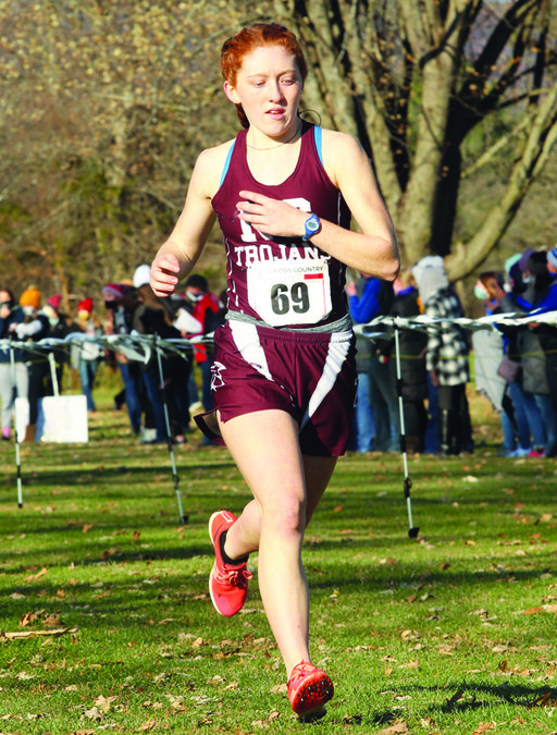 NORTH CRAWFORD runner Helen Carstens competed in the state cross-country meet on a windy Halloween morning. The clear skies and Fall temperatures provided the athletes with pleasant racing conditions despite the strong breeze. West Salem’s Maple Groves Venues hosted the event instead of the typical course in Wisconsin Rapids.