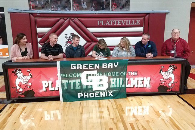 PLATTEVILLE — Surrounding by her parents and coaches, with teammates and friends looking on, Platteville senior Madison Albert-Nelton signed a National Letter of Intent with the UW–Green Bay Women’s Swimming & Diving program Thursday, March 5 in the Platteville High School gymnasium.