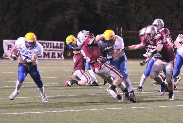With Platteville’s defense obviously more concerned about stopping Lancaster’s outside running game than they were with the inside running game, Mezera ran for 272 yards and four TDs on 21 carries. He also had the 75-yard kick return for a fifth score.